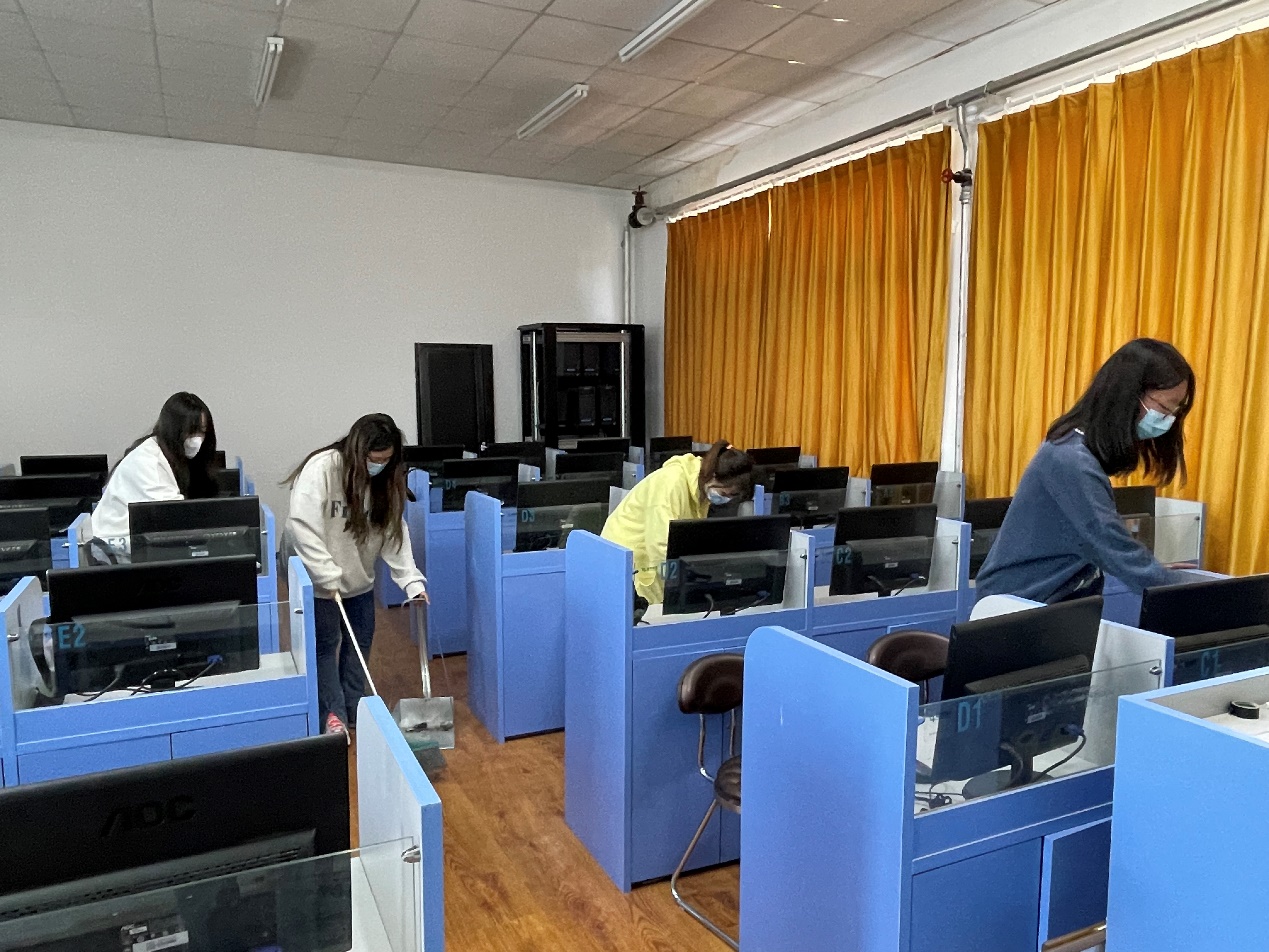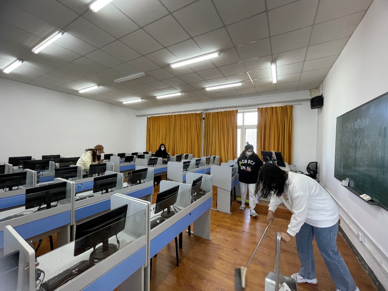 活动中,发展对象们分工明确,积极主动。黄海校区10名发展对象认真清扫寝室走廊、楼梯等公共区域;渤海校区16名发展对象认真整理语音教室桌面,擦拭黑板、电脑键盘和耳机、清扫地板卫生死角,顺利完成语音教室清扫工作。
