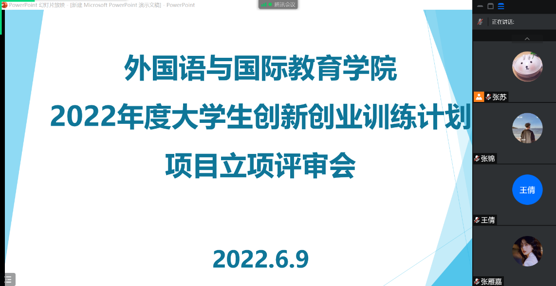 使用腾讯视频会议在线进行了2022年度大学生创新创业训练计划项目立项评审会。评审委员由学院创新创业工作组成员担任,各项目指导教师、负责人及小组成员参加了此次会议。会议由副院长张苏主持。