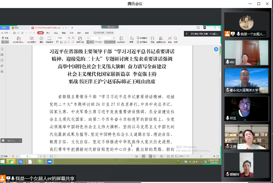 党总支通过腾讯会议开展2022年第八次党总支理论学习中心组学习会。学院党总支理论学习中心组成员参加会议。会议由党总支书记邓艺主持。