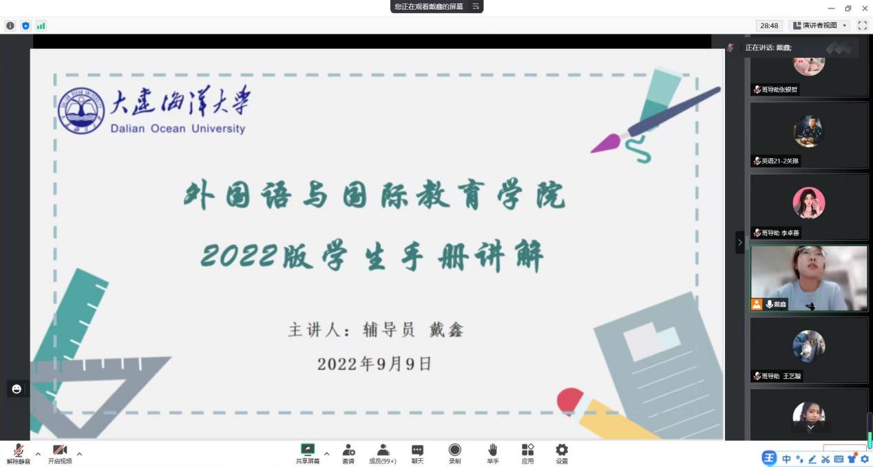 9月9日,麻豆视频 通过腾讯会议召开了2022级新生年级大会。辅导员戴鑫、新生班导助及2022级全体新生参加会议。会议由戴鑫主持。