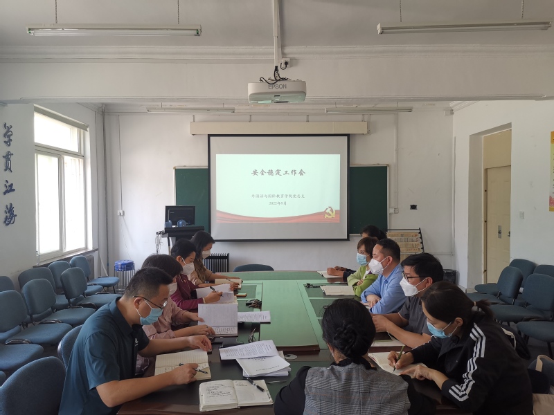 党总支在党员活动室召开安全稳定工作会议,学院党总支领导班子成员、各教研室和办公室主任、学生工作人员、组织员参加会议。会议由党总支书记邓艺主持。