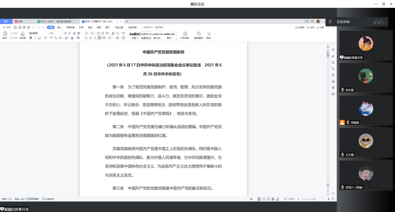 党委各党支部组织全体党员、入党积极分子学习了《中国共产党党徽党旗条例》。
