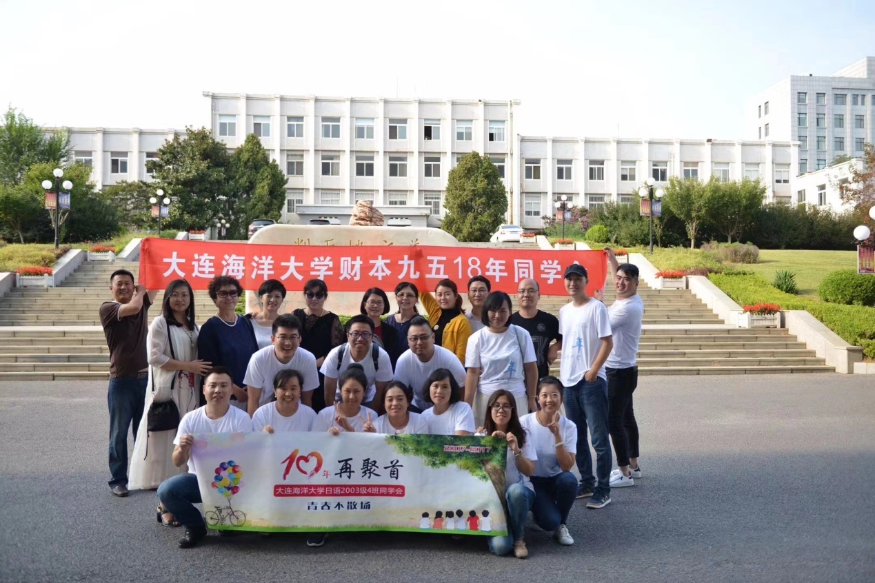 2017年9月,毕业10年的日语2003-4班学生与毕业18年的财本学生合影留念,母校桃李芬芳。