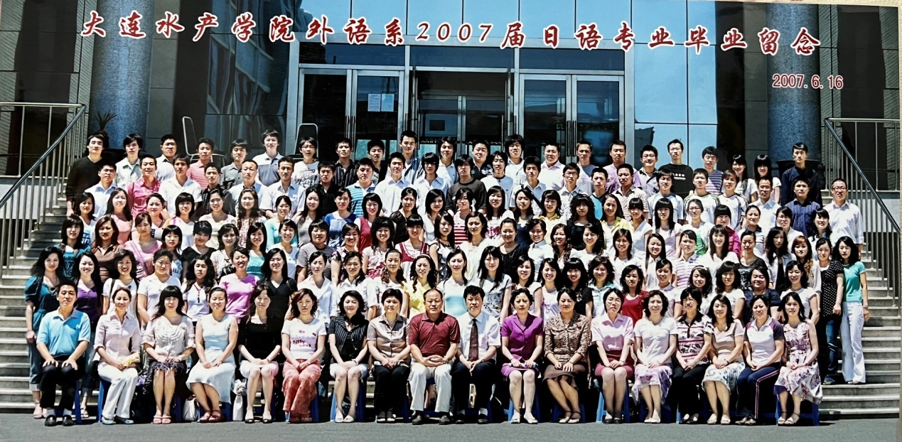 2007年6月,大连水产学院外语系2007届日语专业学生4个班级毕业大合影。