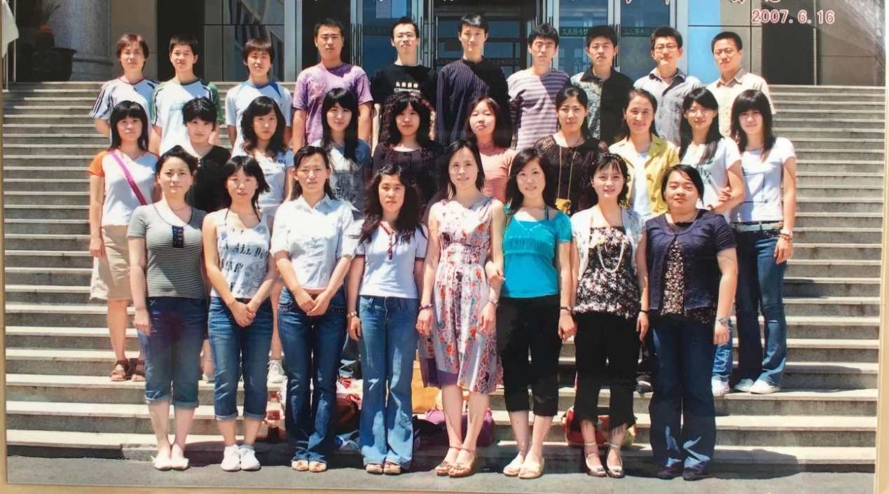 2007年6月,2007届毕业生日语03-4班部分学生与班导师张艺玲(前排右4)合影留念。
