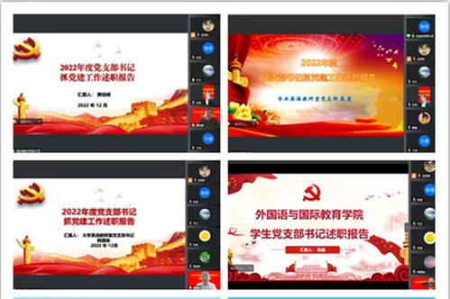 12月14日,麻豆视频 党委通过腾讯会议召开了2022年度基层党支部书记抓党建工作述职评议会,学院党委委员、支部书记、支部委员、师生代表参加会议。会议由党总支书记邓艺主持。