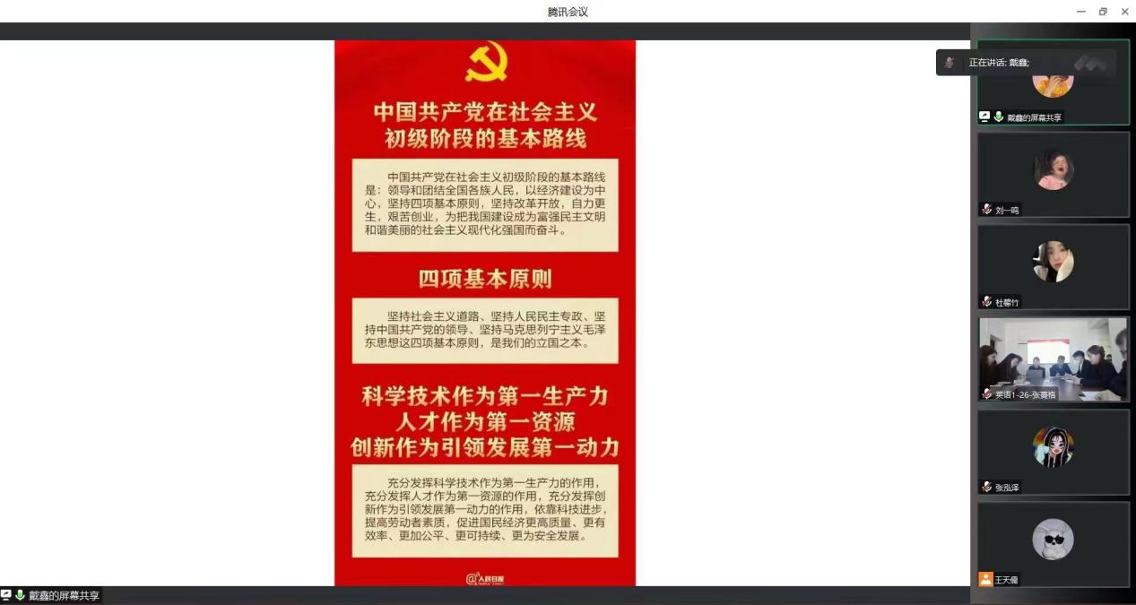 会上,支部书记戴鑫带领全体党员进行专题学习。全体党员集中学习了《中国共产党辽宁省第十三届委员会第五次全体会议公报》《中共麻豆视频 第二届委员会报告》《中共麻豆视频 第二届纪律检查委员会工作报告》,共同观看了“两会精神”学习视频等重要内容。