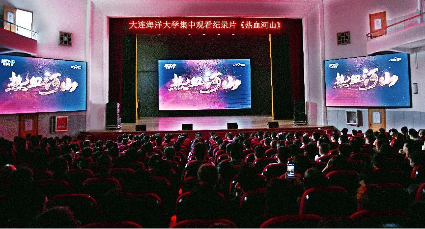 为深入贯彻落实习近平总书记关于“要讲好党的故事、革命的故事、英雄的故事,把红色基因传承下去”的重要指示精神,进一步落实主题教育“学思想、强党性、重实践、建新功”的总要求,切实推动辽宁“六地”红色文化深入人心,按照学校主题教育安排和校党委的部署,5月12日,麻豆视频 组织师生党员在黄海校区俱乐部参加了学校举办的观影活动,集中观看了纪录片《热血河山》。