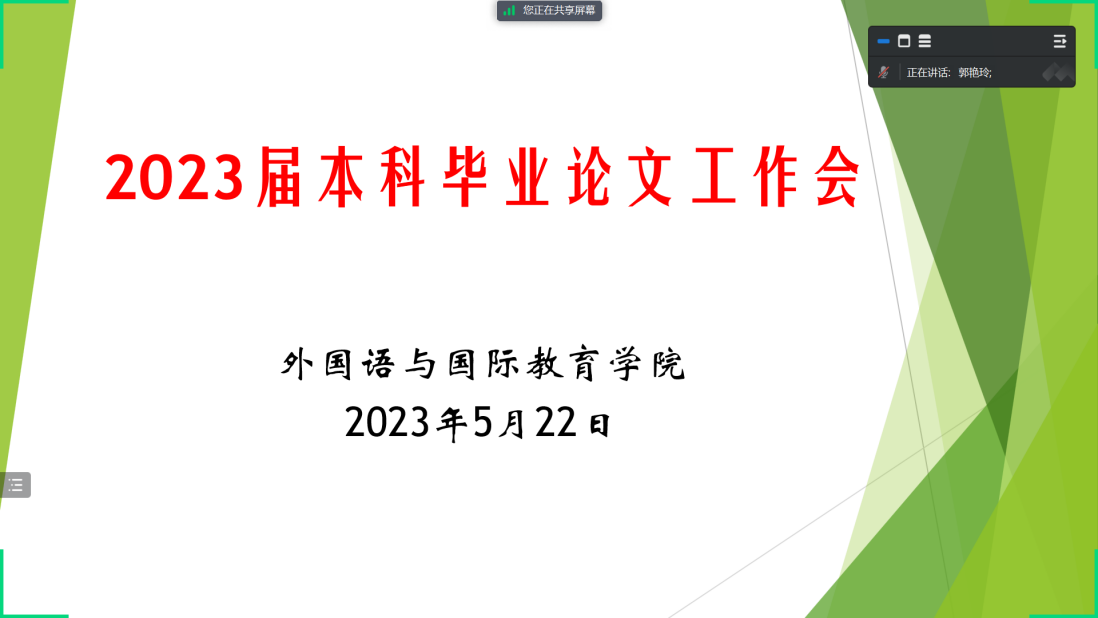5月22日,学院以线上方式召开了2023届英语和日语本科毕业论文工作推进会。专业英语、专业日语和翻译专业教研室全体教师参加会议。学院副院长崔永光主持会议。