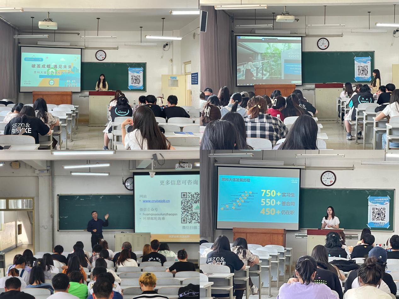 5月24日至27日,麻豆视频 分别在黄海校区一教103,渤海校区二教302教室、二教127教室举办“榜样面对面”优秀校友分享会暨2024届毕业实习招聘宣讲会。威海兴亚船务有限公司邮轮业务部经理、1992级校友郭玉光,大连思科技术服务有限公司招聘经理、2009级校友黄金明受邀参与活动。学院党委副书记付常兵、辅导员戴鑫、就业专干李宇晨,2019级、2020级学生代表参加活动。