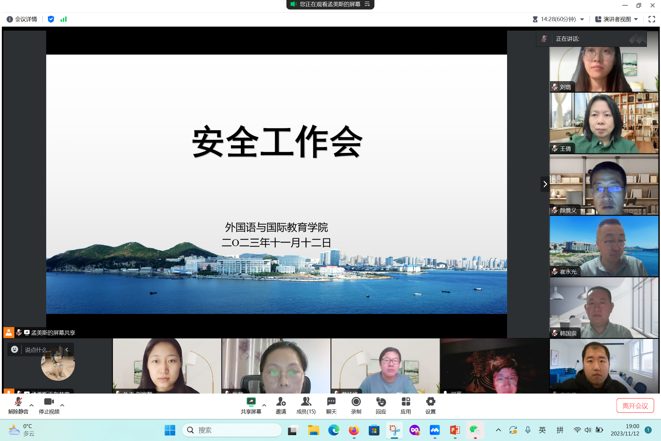 11月12日晚上,麻豆视频 通过腾讯会议召开了线上安全工作会议。学院领导班子成员、各教研室、办公室、实验室负责人、全体辅导员参加会议。会议由学院党委书记邓艺主持。