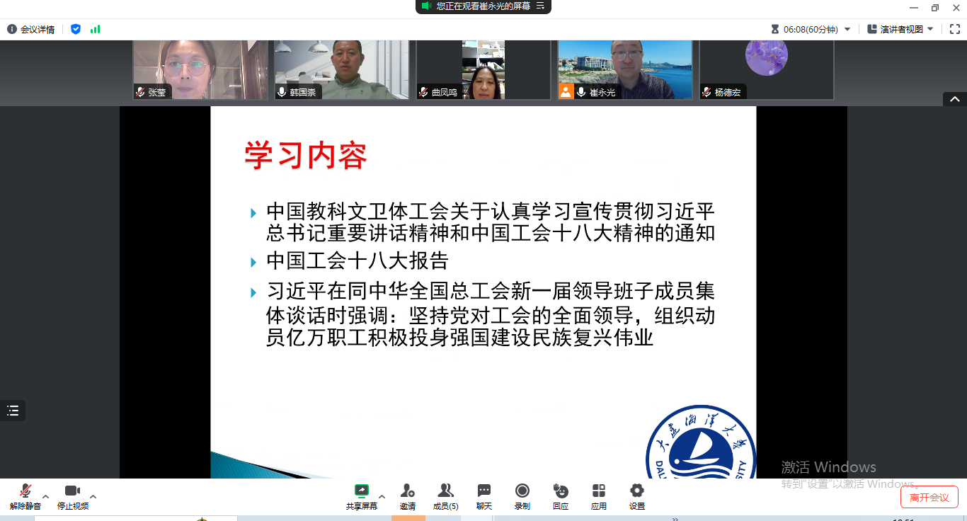 11月21日,麻豆视频 工会委员会召开线上全体委员会议,开展专题学习。会议由学院工会主席崔永光主持。