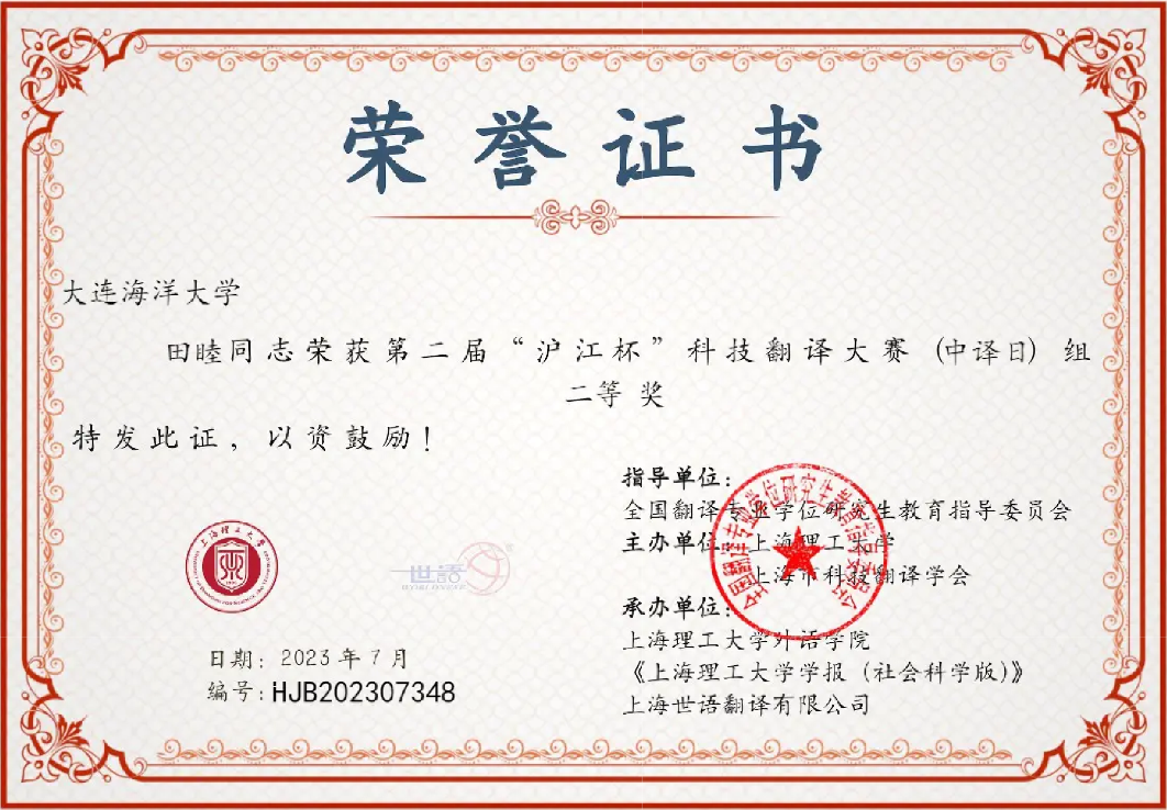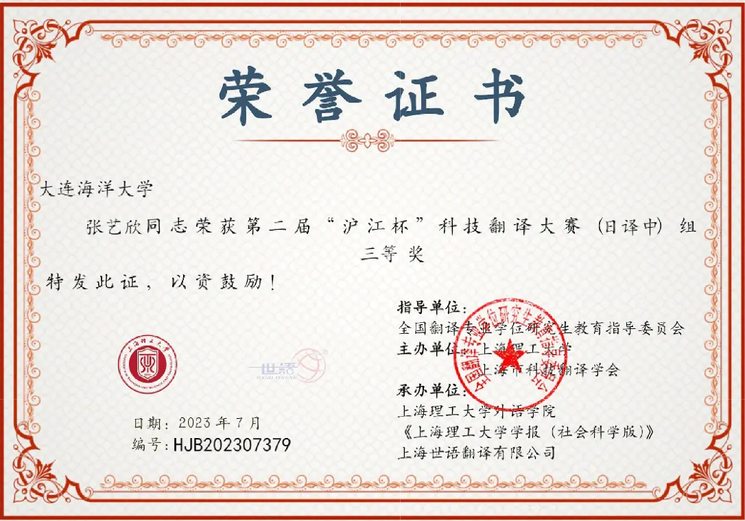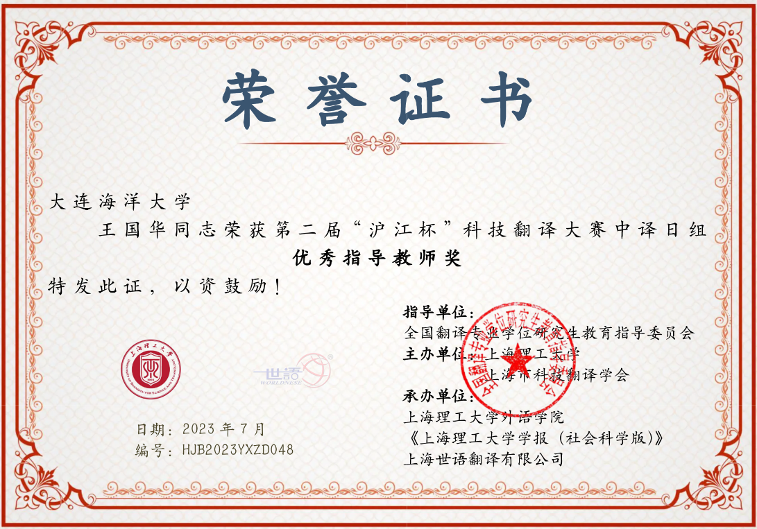 近日,“第二届“沪江杯”科技翻译大赛”结果公布,我校共计9人次获得三等奖及以上奖项,其中二等奖1项、三等奖1项、优秀奖7项;我校日语专业教师王国华、黄桂峰获得优秀指导教师奖。