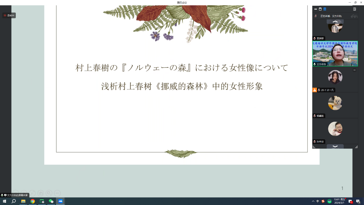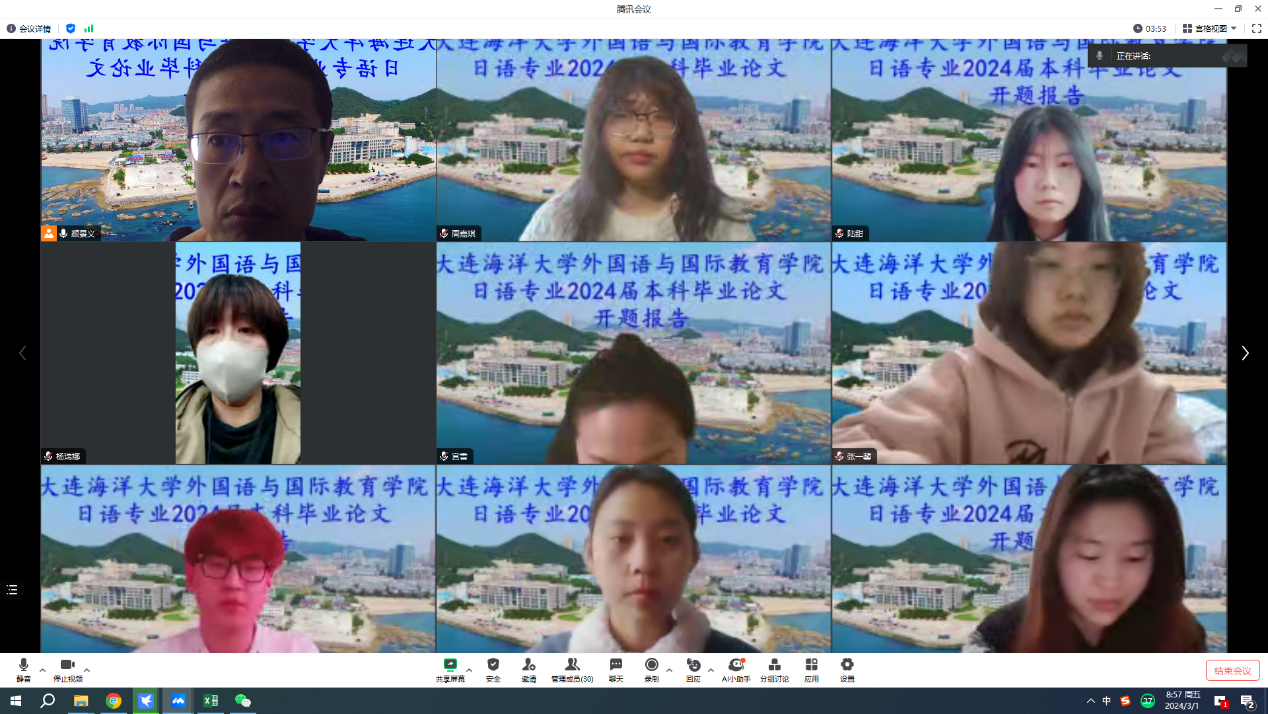 为保证本科毕业论文质量, 3月1日,麻豆视频 日语专业召开了2024届本科毕业论文开题报告线上工作会议。会议分为三组进行,日语教研室全体教师和日语专业2024届全体毕业生参加。