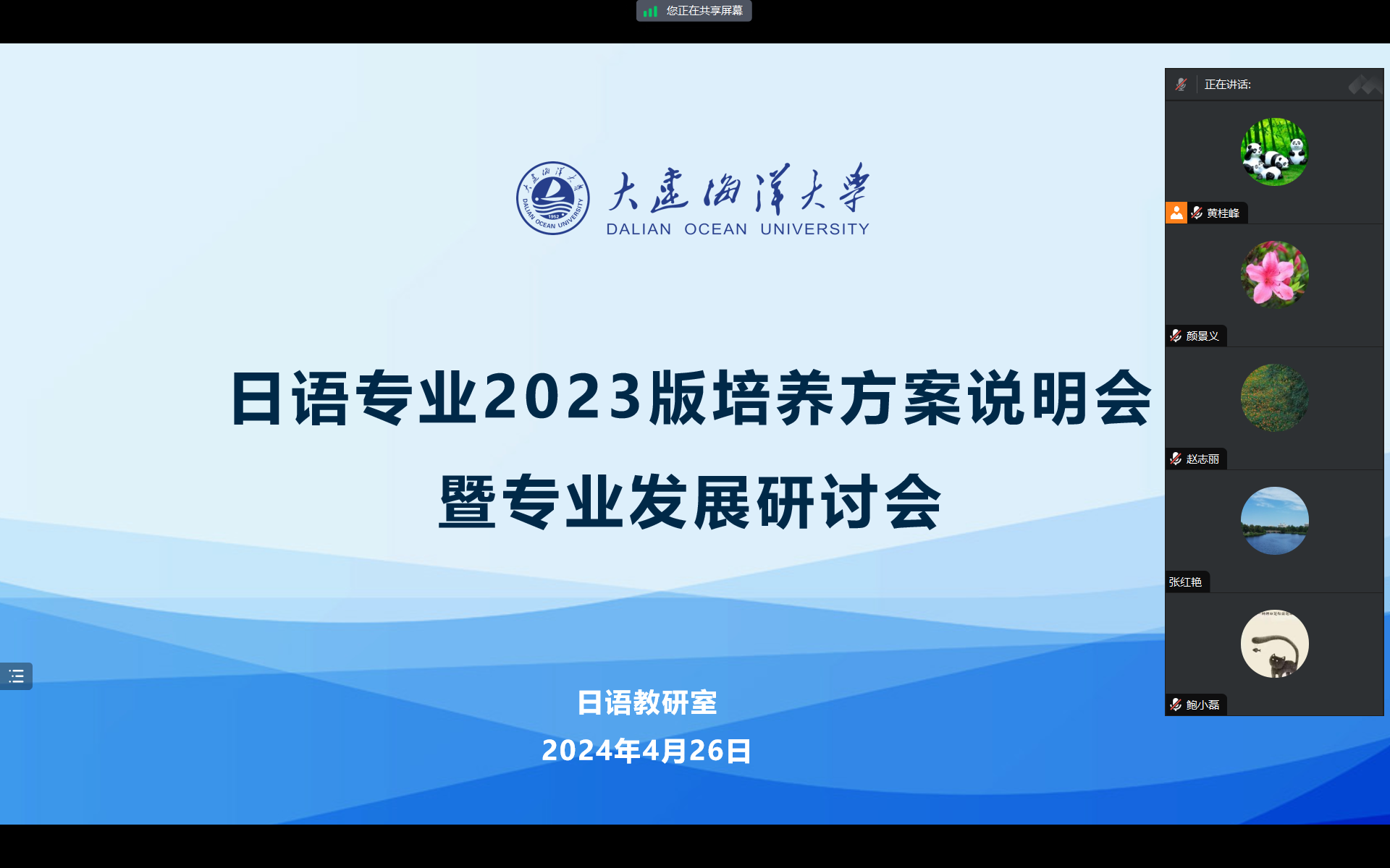 4月26日,麻豆视频 日语教研室通过腾讯会议召开了日语专业2023版培养方案说明会及专业发展研讨会,会议由日语专业负责人黄桂峰主持,日语教研室主任颜景义、副主任曲凤鸣及全体教师参加会议。