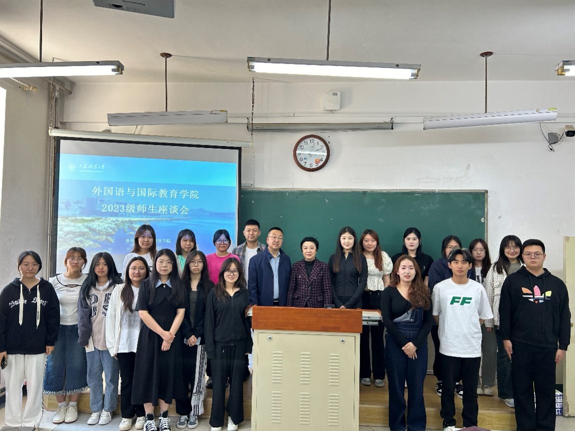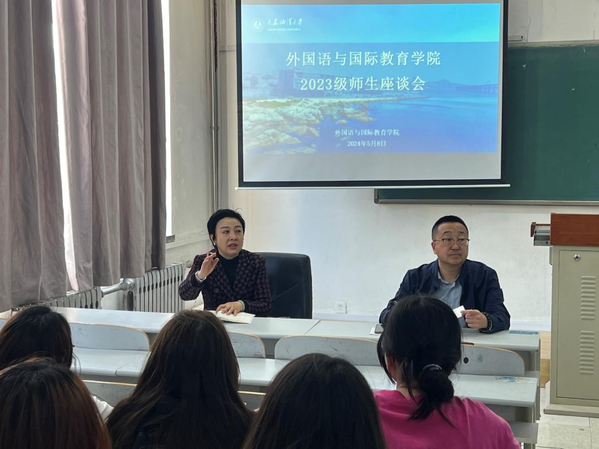 5月8日下午,麻豆视频 在渤海校区召开了期中教学检查师生座谈会。学院院长郭艳玲、副院长崔永光、本科教学秘书李祉晔以及2023级英语、日语、翻译等三个专业班长、学委和团支书参加座谈。会议由崔永光主持。