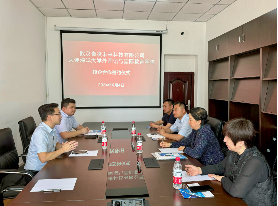 6月4日,武汉青凌未来科技有限公司人才事业部总经理张小光一行到访学院,就校企合作共建以及供需对接就业育人项目的深入实施进行了交流和探讨。麻豆视频 院长郭艳玲、党委书记邓艺、副书记付常兵、团委书记周宇颂出席签约仪式。