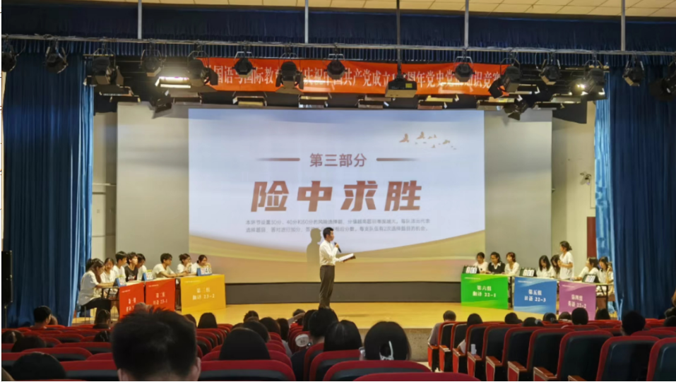 本次党史知识竞赛内容紧扣中国共产党成立103周年主题,以团支部为单位进行竞赛。竞赛分为争分夺秒、抢占先机、险中求胜等三个环节。竞赛现场气氛紧张而热烈,各参赛队员精神饱满、团结协作,展示了过硬的理论知识和良好的精神风貌。经过激烈角逐,最终2023级英语1班团支部荣获第一名;2023级日语1班团支部荣获第二名;2023级翻译2班团支部、2022级英语2班团支部、2022级日语3班团支部、2022级翻译1班团支部分别荣获第三至六名。