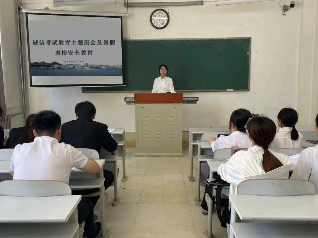 会上,辅导员传达了学校暑假放假通知精神,对期末大学生日常行为管理和暑期安全注意事项进行了强调。针对诚信考试、考前纪律等内容,辅导员结合学生手册相关规定,要求学生们充分准备期末复习,树立诚信考试意识,严肃认真对待考试,严格遵守考试纪律。