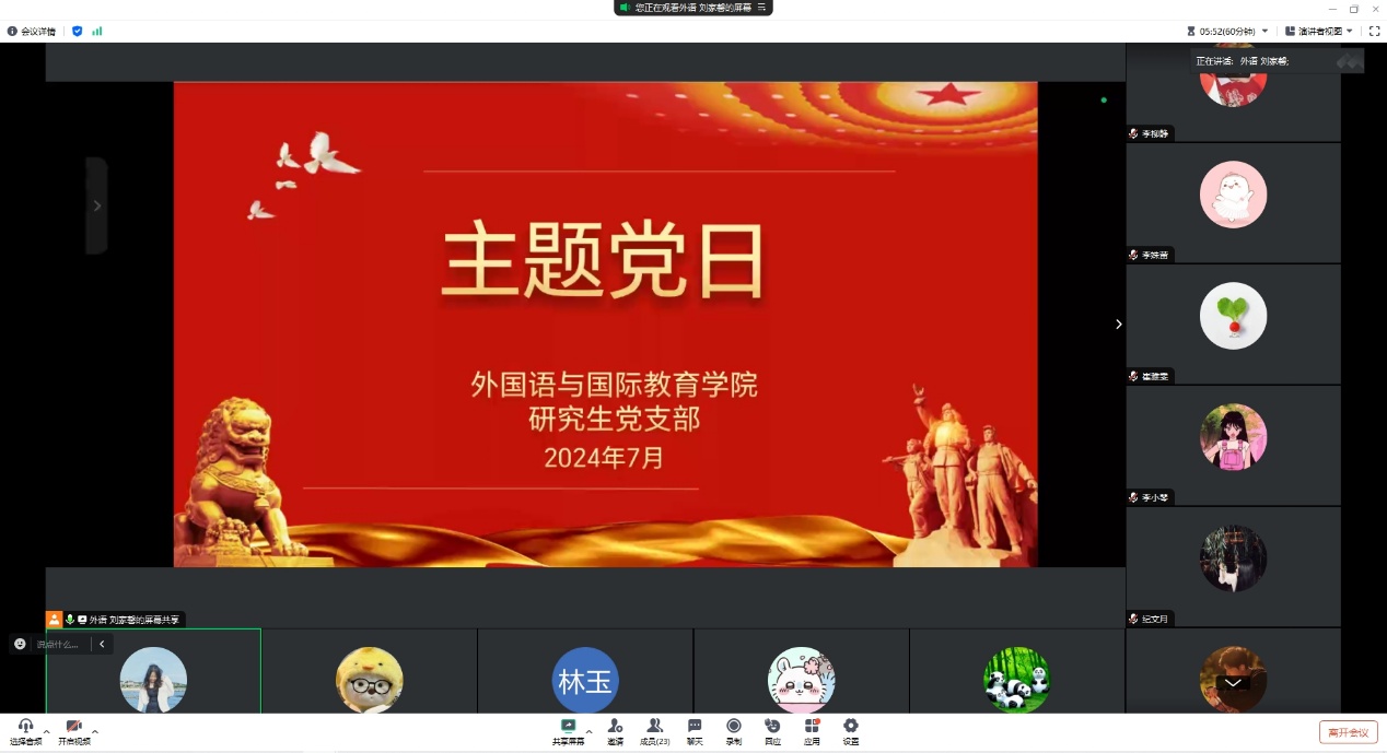 7月10日,麻豆视频 研究生党支部在线上组织开展了七月主题党日活动。会议由研究生党支部书记刘家馨主持。