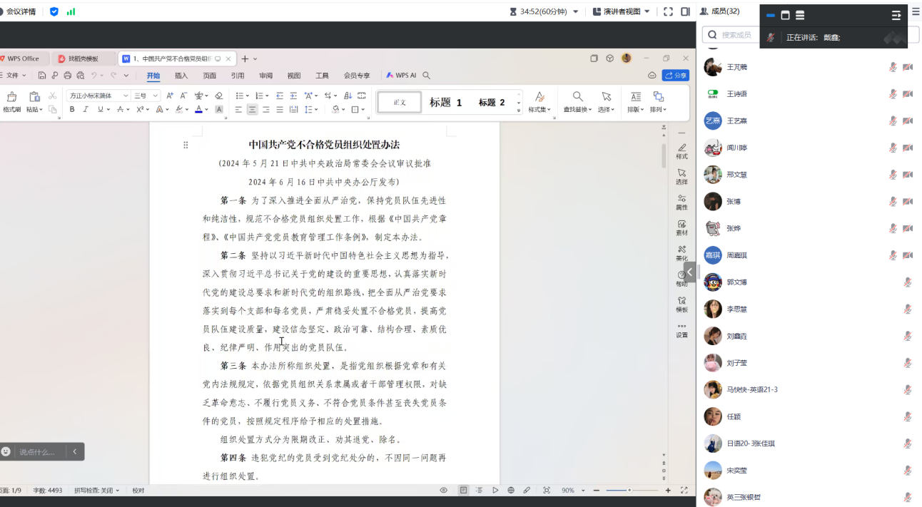 会上,支部党员认真学习了《习近平关于全面加强党的纪律建设论述摘编》、《中国共产党不合格党员组织处置办法》,观看了2024年高校党组织示范微党课第三讲《<中国共产党纪律处分条例>解读》和《牢记殷殷嘱托 展现更大担当--全省“两优一先”风采录》。