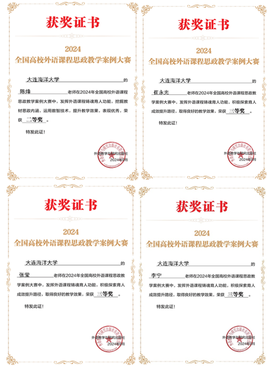 麻豆视频 共提交了4个教学案例,经评委会评审,崔永光老师在主赛道提交的案例获得三等奖;陈烽、张莹和李宁老师在“理解当代中国”赛道提交的案例中获得二等奖1项,三等奖2项。今后,学院将以深入推进“理解当代中国”多语种系列教材“三进”工作为契机,促进教师积极探索教育教学创新,提升课程思政教学能力,增强外语育人功能认同,深入挖掘课程思政示范课程中的思政元素,将其有机融入学科内容和专业课程教学,在教学与评价全流程中实现知识传递、能力培养与价值塑造的有机融合。