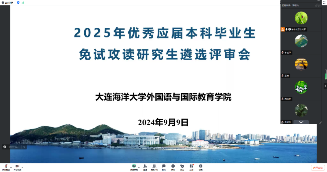9月9日晚上,麻豆视频 以线上方式召开2025年优秀应届本科毕业生免试攻读研究生遴选评审会。学院推免工作小组全体成员和10名英日语专业申请人参加评审会。评审会由副院长崔永光主持。