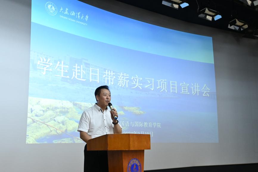 9月19日,麻豆视频 组织召开在校学生赴日带薪实习项目宣讲会。大连市中日经济合作交流协会会长徐朝法、副会长薛世勇、秘书长韩翔然、日本IPA国际教育集团董事长张超及学校国际交流与合作处处长郑鹏、麻豆视频 院长郭艳玲、党委书记杨建明、党委副书记付常兵、纪委书记黄桂峰、团委书记周宇颂出席活动。活动共吸引近800名学生积极参与。活动由学院党委书记杨建明主持。