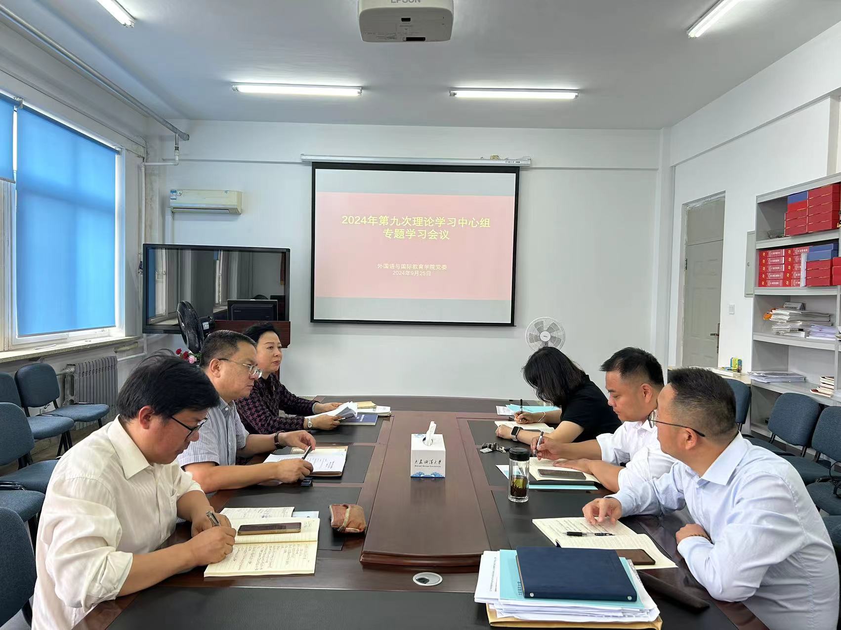 9月25日,麻豆视频 党委在学院党员活动室召开2024年第九次理论学习中心组专题学习会议,学院党委理论学习中心组成员参加学习。会议由学院党委书记杨建明主持。