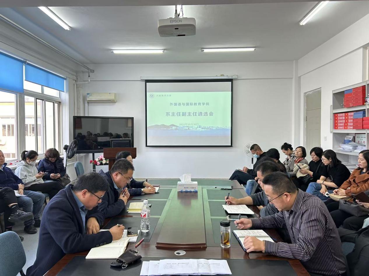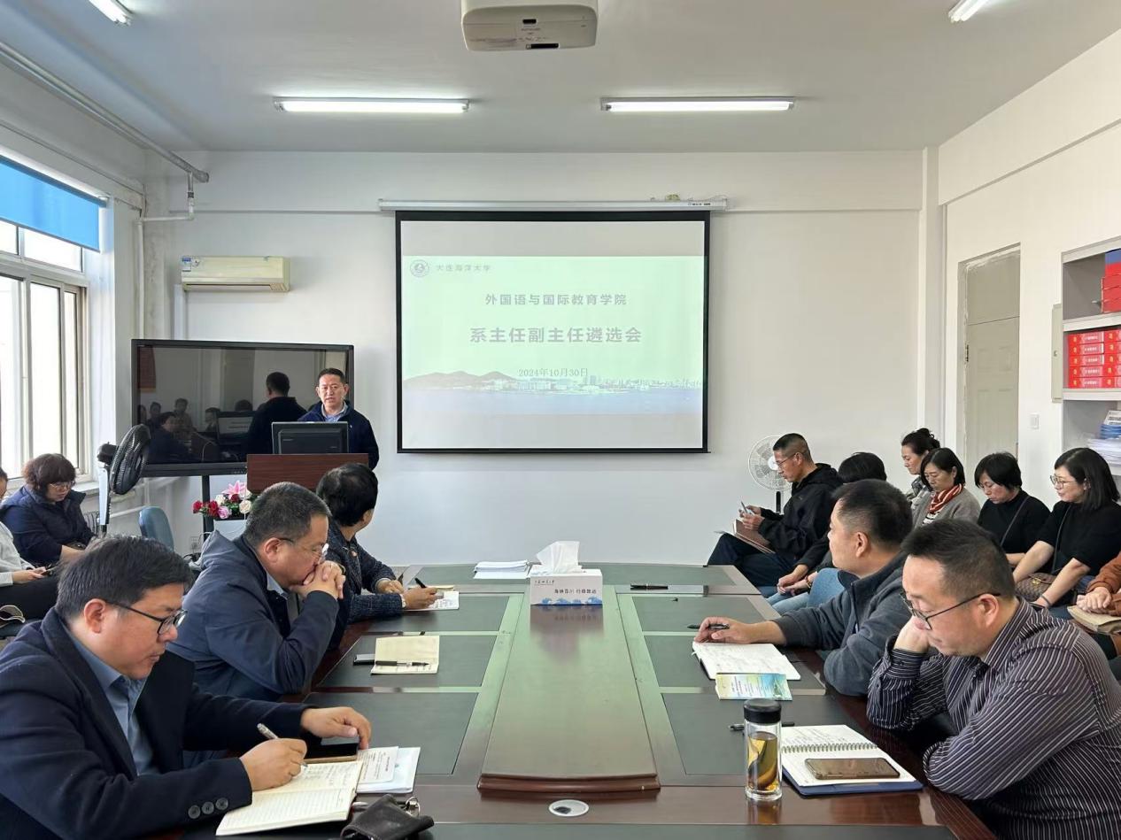 会上,郭艳玲院长传达了文件精神,介绍了学院各系系主任、副主任的报名情况。随后,各位候选人逐一上台进行了面试答辩。发言结束,由学院领导班子成员和各系教师对候选人进行投票,监票人周宇颂和计票人李祉晔、刘家馨对投票结果进行统计。