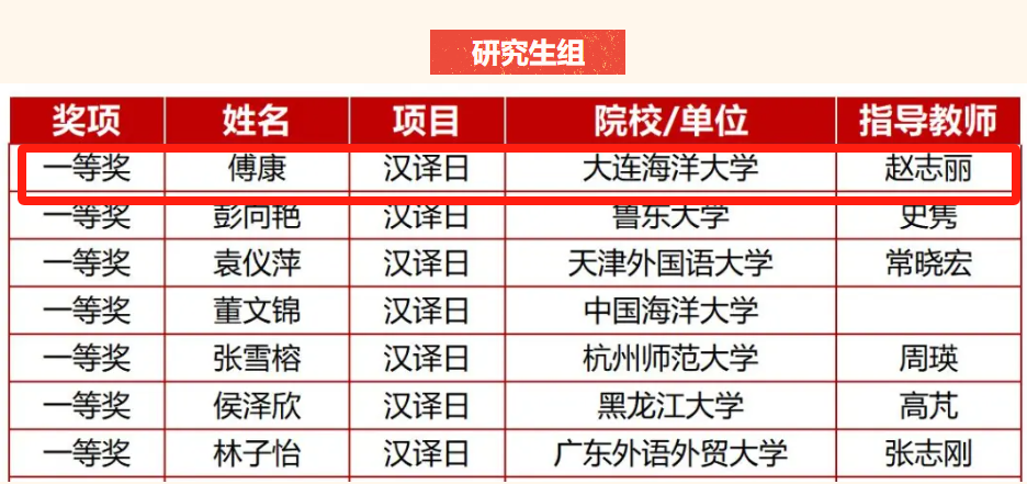 11月29日,第七届人民中国杯日语国际翻译大赛结果揭晓,我校师生在此次大赛中表现优异,共斩获13项殊荣。其中,日语系2023级研究生傅康同学在赵志丽老师的指导下,凭借卓越的翻译技巧和深厚的语言功底荣获研究生组汉译日项目全国第一名(一等奖)。