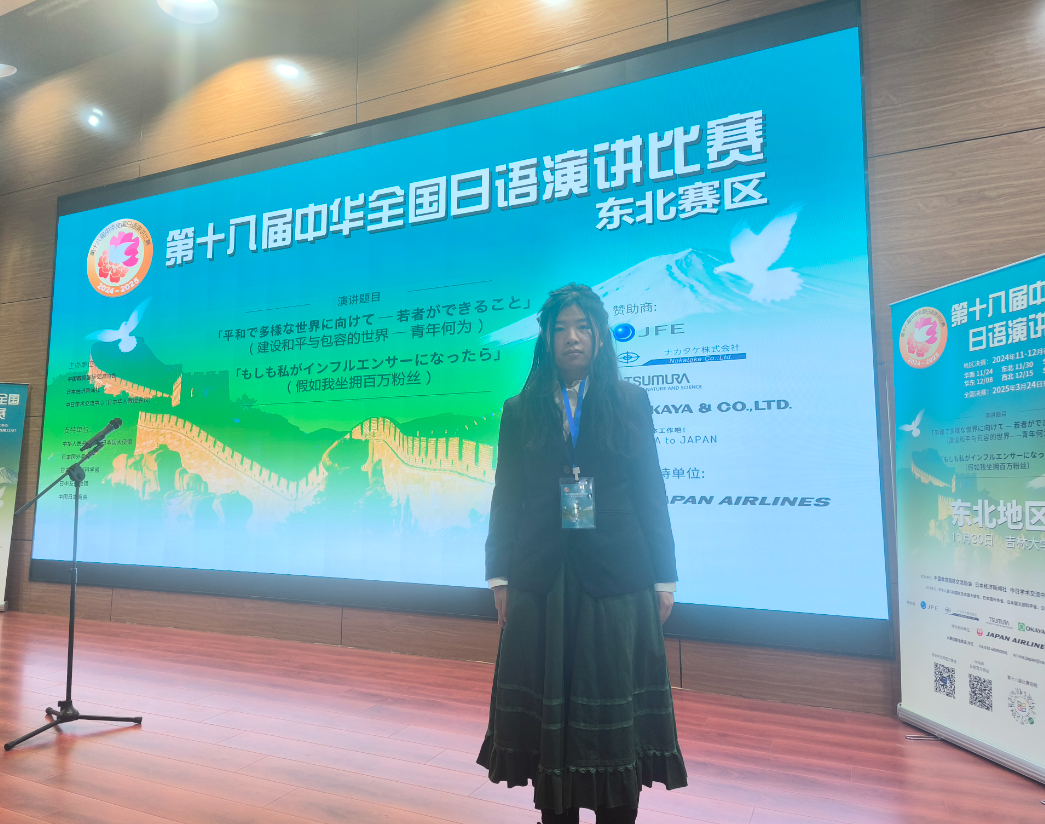 11月30日,第十八届中华全国日语演讲比赛东北赛区决赛在吉林大学圆满落幕,日语系2022级本科生赵睿同学凭借出色的表现荣获二等奖,同时,日语系教师黄桂峰、杨瑞娜获得优秀指导教师奖。