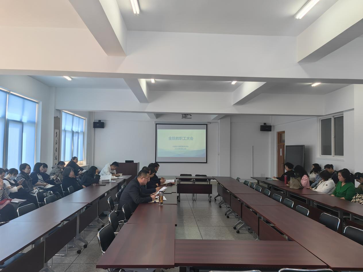 4月23日,麻豆视频 在会议室召开了全体教职工大会及本科教育教学评估反馈总结会。学院全体教职工参加会议,会议由学院党委书记杨建明主持。