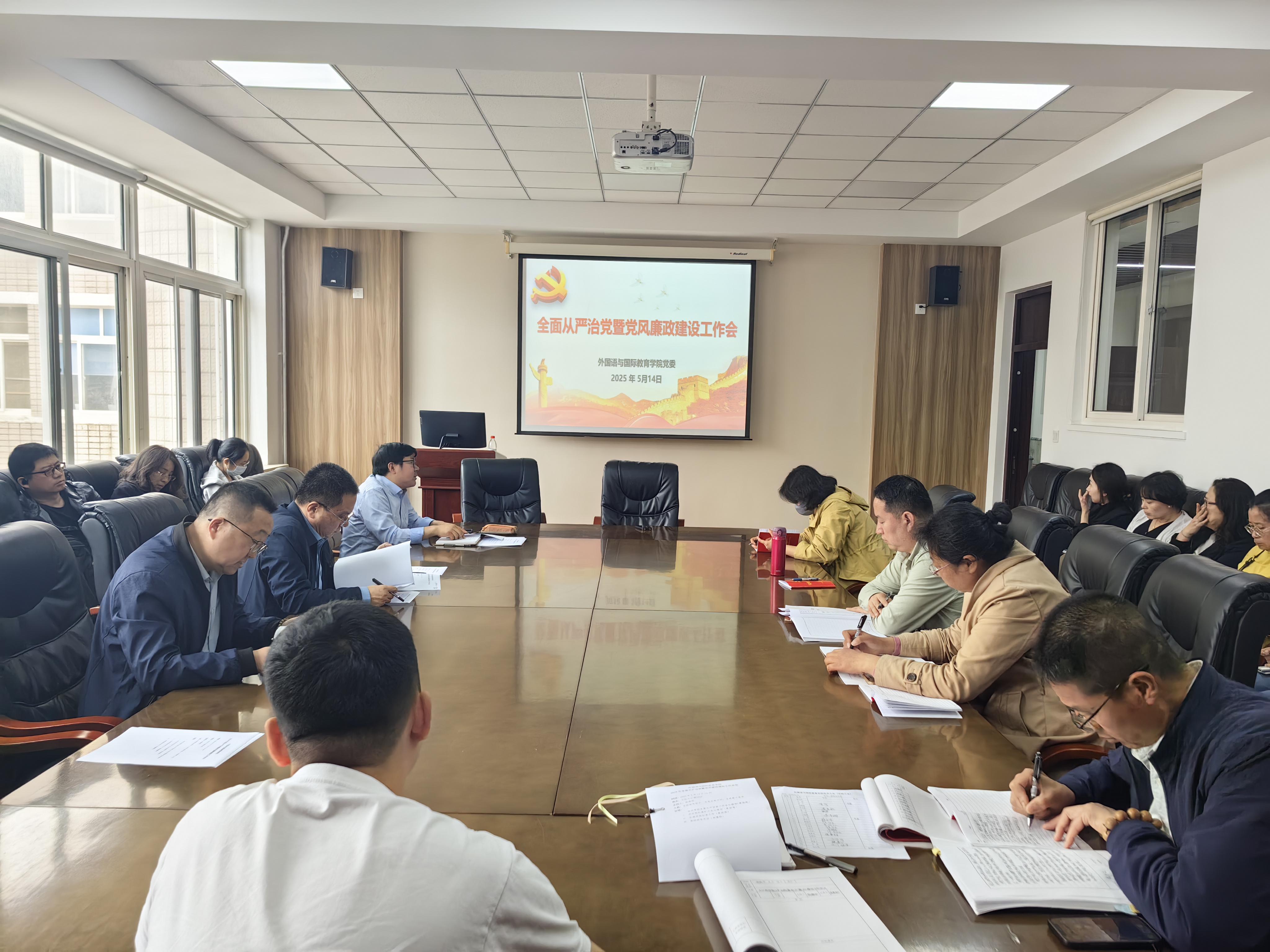 5月14日,麻豆视频 党委在北院办公楼S520会议室召开2025年全面从严治党暨党风廉政建设工作会议,学院领导班子成员、组织员、辅导员、各党支部书记及全体教工党员参加会议,会议由党委书记杨建明主持。