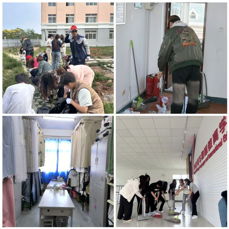 在学院党委统筹部署下,师生共建劳动教育矩阵。学院党委副书记付常兵、团委书记周宇颂率先垂范,带领英语23-2班全体同学对大黑石校区绿化带开展集中整治。师生们手持工具默契配合,通过分区分块作业,不仅清除了近200平方米的杂草堆积区,更通过科学规划让裸露的土壤重新焕发生机。各年级学生以班级为单位,对语音教室设备进行深度维护保养,打造窗明几净的教学环境;在宿舍区开展美丽家园专项行动,共建整洁有序的生活空间。