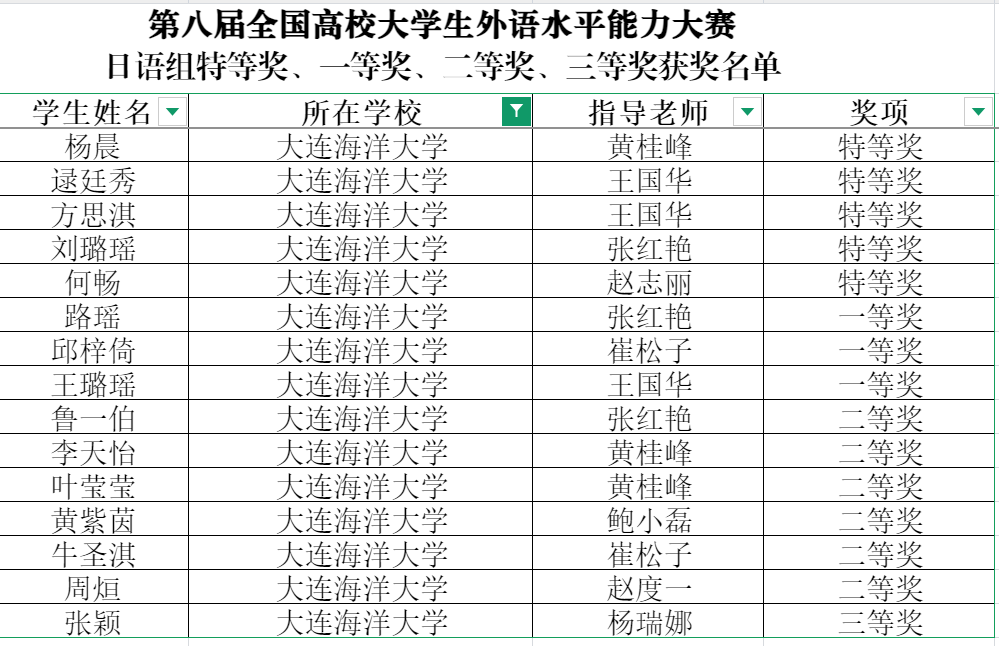 613日,第七届全国高校大学生外语水平能力大赛公布结果,我校共15名同学获得日语组不同奖项。其中,杨晨、逯廷秀等5人获得特等奖;路瑶、邱梓倚等3人获得一等奖;鲁一伯、李天怡等6人获得二等奖;张颖获得三等奖。