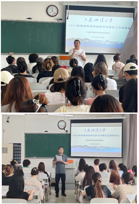 72日下午,麻豆视频 英语系在大黑石校区召开2022级英语专业毕业实习和就业工作动员会。学院副书记付常兵、副院长崔永光和英语系副主任苍巍巍以及2022级英语专业全体学生参加会议。