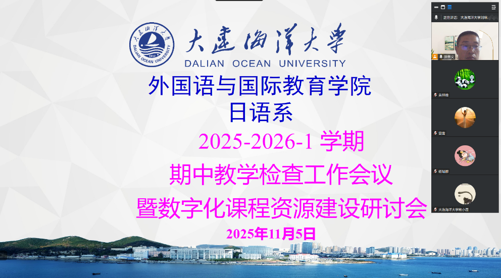 11月5日,日语系通过腾讯会议召开期中教学检查工作会议暨数字化课程资源建设研讨会。会议旨在全面梳理本学期教学工作,总结经验、查找不足,并探讨在教育数字化背景下日语专业课程建设的新路径。会议由日语系副主任颜景义主持。