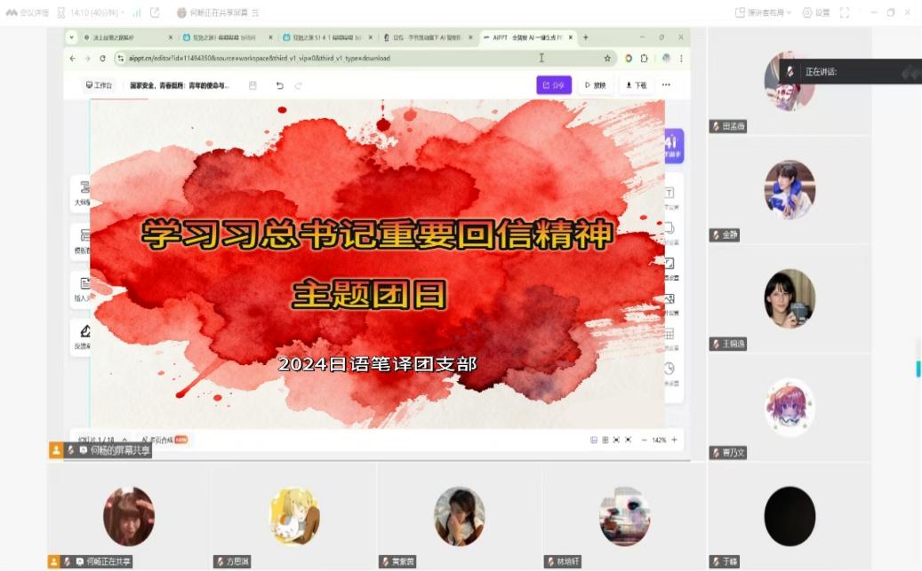 线下,同学们通过视频展播、文字纪实再现基层支教、志愿服务场景,直观解读回信精神的实践内核,大家相互交流学习心得,将精神感悟转化为奋进动力。线上,团支部围绕回信中对青年成长的殷切期望深研细悟,分享如何以语言为桥践行精神,在心得交流中明晰青年使命。各团支部发起“践行回信精神·青春建功新时代”倡议,学子们纷纷表示将以回信精神为指引,扎实学好专业知识,提升跨文化沟通能力,用青春行动诠释青年责任。