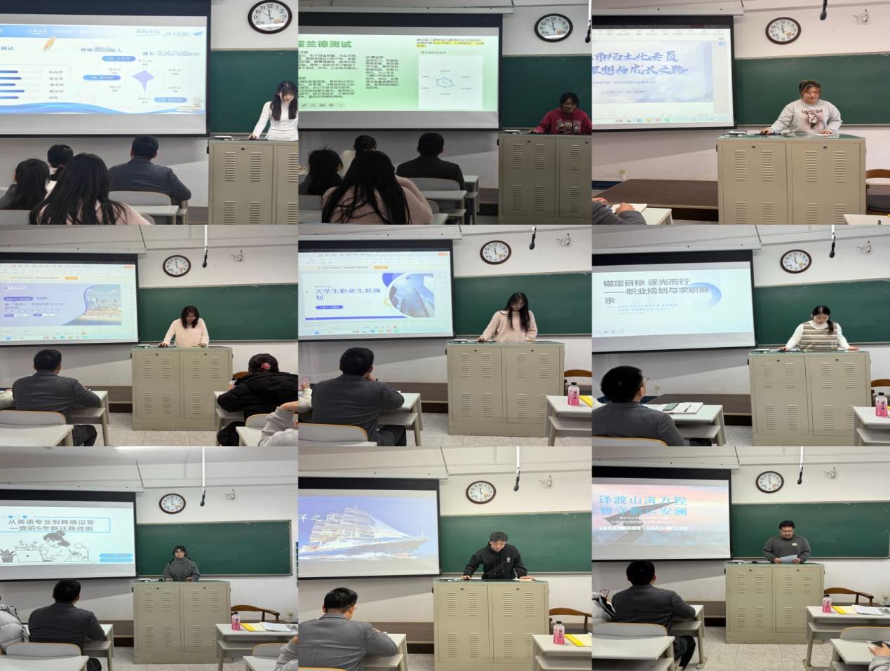 本次初赛紧扣“自我剖析・环境研判・生涯设计”核心逻辑展开,经过前期多轮选拔,从665名参赛学生中脱颖而出的9名选手晋级初赛展演环节。展演中,选手们围绕职业定位、实践路径、动态调整等关键维度,系统呈现个性化职业规划蓝图。大家充分立足外语专业优势,精准聚焦“涉外海洋文旅传播”“国际教育交流服务”“多语种商务对接”等特色领域,展现出清晰的职业思考与鲜明的专业辨识度。