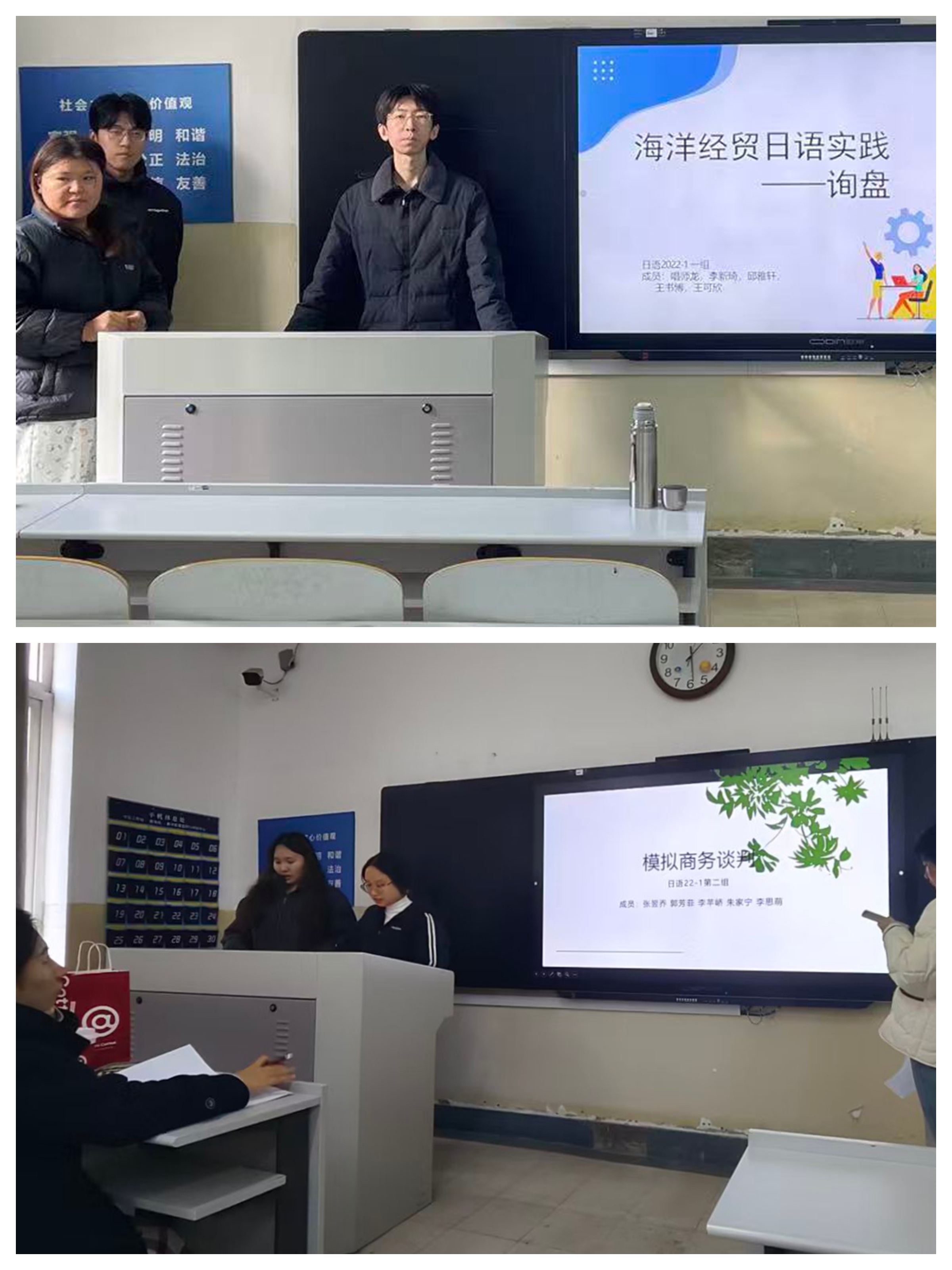 《海洋经贸日语实践》以海洋外贸业务为核心,通过询盘、发盘、还盘实训及涉海产品模拟商务谈判,让学生用日语处理海洋水产贸易场景中的业务。强化了学生海洋经贸日语表达与实务操作能力,提升对接海洋外贸岗位的竞争力。