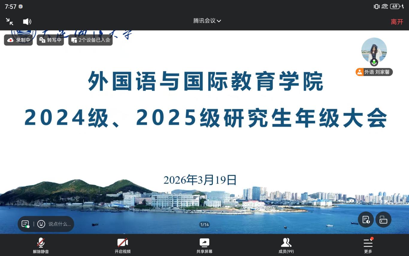 为扎实推进2026年春季学期研究生毕业就业、日常管理及安全教育等重点工作,强化学生思想引领,提升学生安全防范意识,近日,麻豆视频 分年级召开2023级、2024级及2025级研究生年级大会,结合各年级学业特点与发展需求,针对性部署育人及安全管理相关工作。