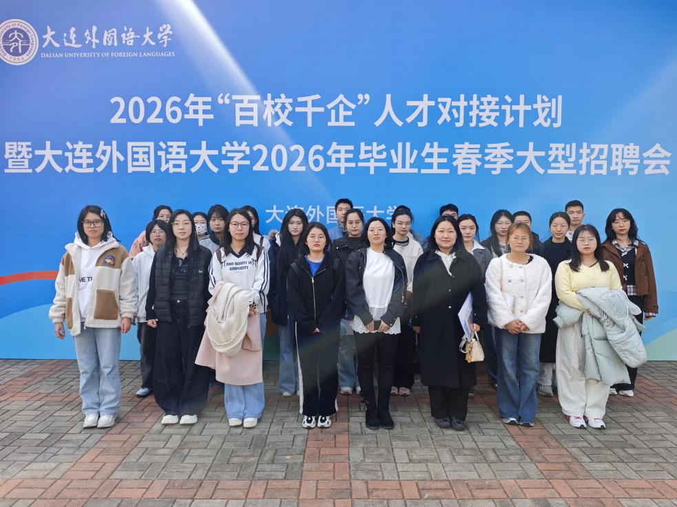 为精准搭建毕业生与用人单位对接平台,切实做好就业服务工作,在学校招生就业处的指导支持下,3月25日,麻豆视频 组织毕业年级学生前往大连外国语大学,参加“2026年‘百校千企’人才对接计划暨大连外国语大学2026年毕业生春季大型招聘会”,助力学生高质量就业。