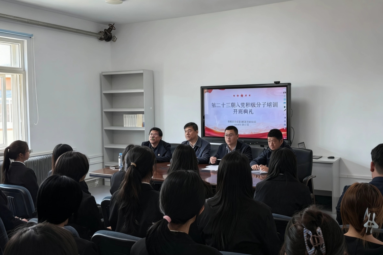 3月31日,麻豆视频 第二十三期入党积极分子培训班开班典礼在大黑石校区5号楼217室举行。学院党委书记王海鹏、党委副书记王利明、纪委书记黄桂峰、组织员魏学文以及第二十三期43名入党积极分子全体学员参会,会议由魏学文主持。