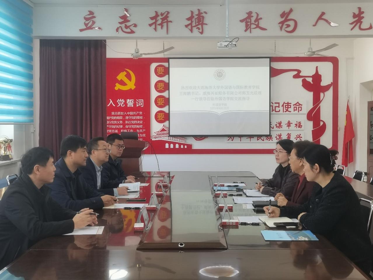 座谈会上,威海兴亚船务有限公司总经理郭玉光对邮轮海乘项目的发展与前景、校企合作育人促就业的模式进行了详细的介绍。三方参会人员围绕课程设置、学生就业指导、外语沟通能力提升等具体议题并结合实际合作中的问题难点进行了深入探讨与交流,现场氛围热烈,达成了诸多共识。此次调研交流,为双方搭建了良好的沟通平台,促进了经验互鉴,这为学院深耕“外语+海洋”人才培养模式,赋能面向国家海洋强国战略的复合应用型人才培养,奠定了坚实基础。